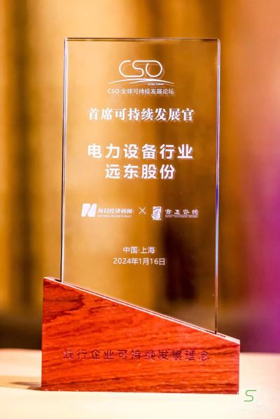 此次論壇上,遠(yuǎn)東智慧能源股份有限公司(股票名稱“遠(yuǎn)東股份”,股票代碼“600869”)獲得了2024“CSO首席可持續(xù)發(fā)展官”獎(jiǎng)項(xiàng)。